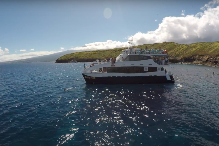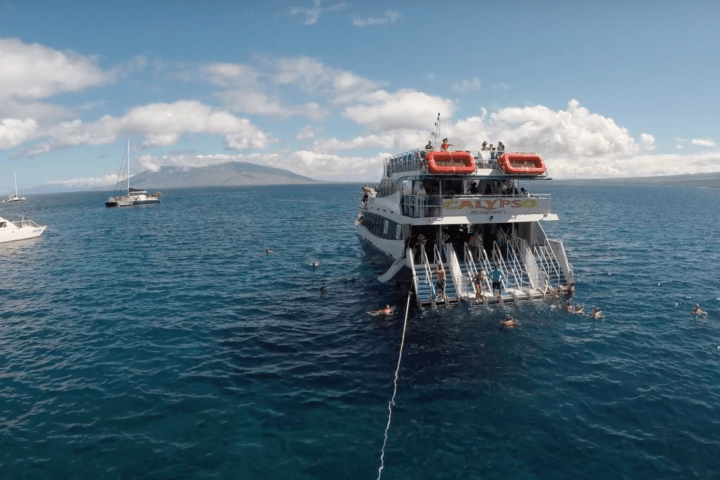 A Molokini snorkeling adventure aboard Calypso is the most fun on Maui! This stable, high-speed, triple-decker catamaran will get you to two snorkel sites fast: Molokini Crater and Turtle Town, and with all the equipment you need and plenty of food on board, what more could you ask for?